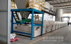 450度高溫烤電池粉末水份烘干隧道式烘干爐主要技術參數 1、內膽尺寸:加熱區長20000*進料口高100*內膽有效寬1400mm,堆料寬度1200mm. 2、外形尺寸(約):總長26500*高1550*寬2100mm...